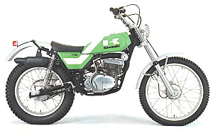 72年まではなかなかモトクロスで良い結果が残せず苦しんでいたカワサキであるが、ピストンバルブ250ccエンジンの開発により、大きく道が開けることになる。これに対し、トレール車は比較的大人しい性格のものが多くなっていく。 |